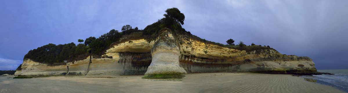 Curieuse falaise de Meschers-sur-Gironde. Une ambiance de solitude et de fin du monde. Navire de roche et d'arbres échoué sur la plage. Une île flottante ne flottant plus.